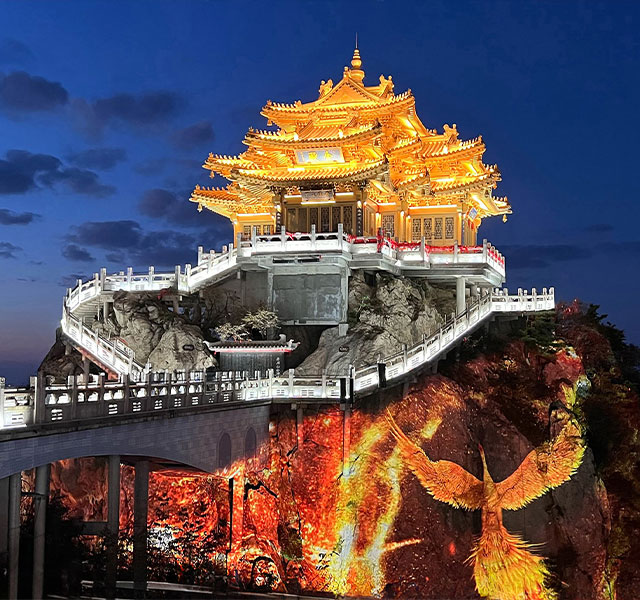 Projectors illuminate Mount Laojun with vivid visuals